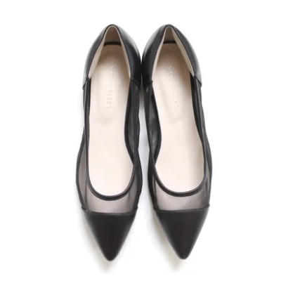 ローヒールパンプス フラットパンプス 1cmヒール パンプス レディース 歩きやすい 痛くない CX2415 (ブラック(チュール))